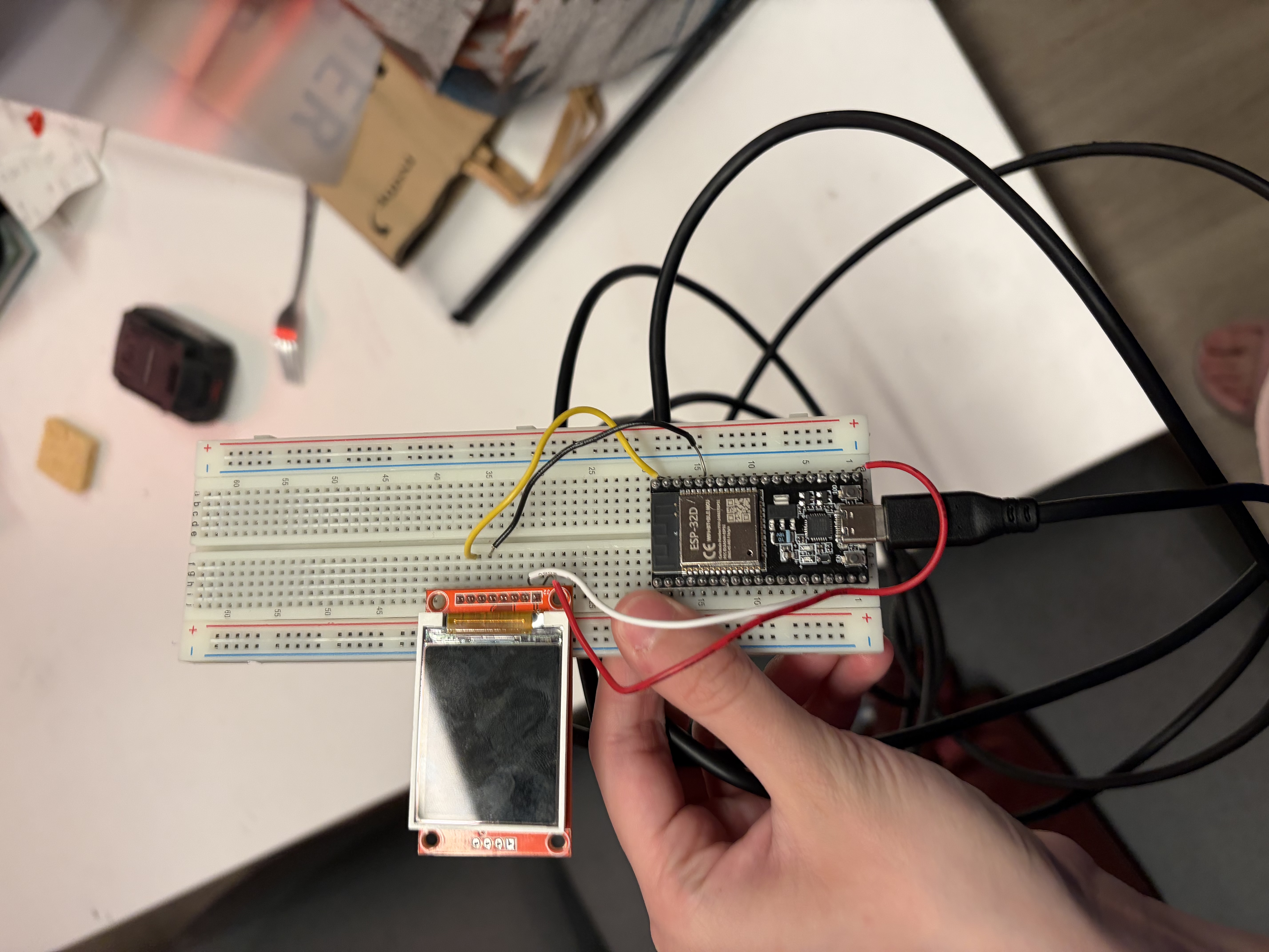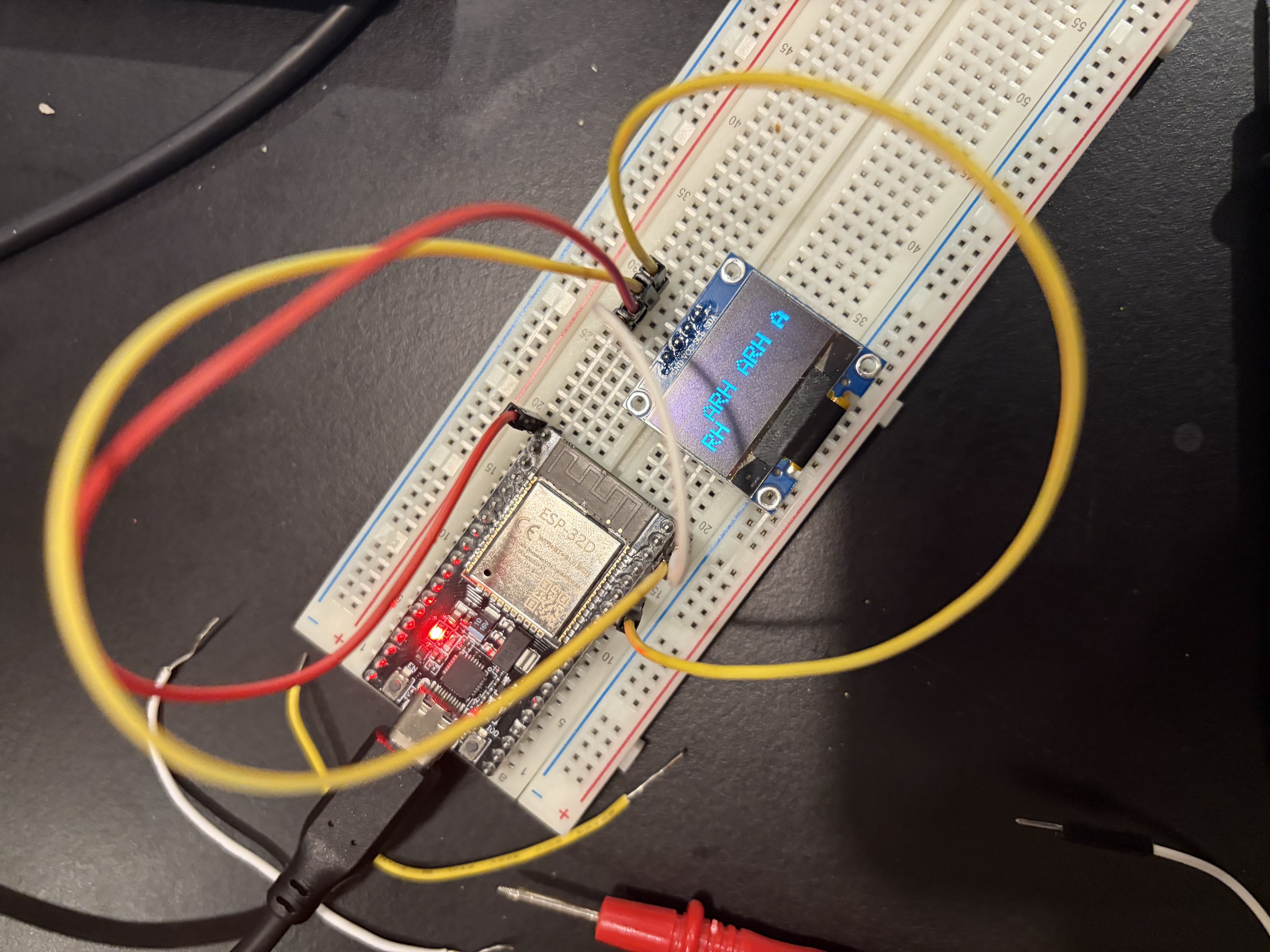 I wired everything up and tried to get some simple code displayed on the screen to make sure it was working properly, and this is where things went wrong for a bit. Not only were my attempts to Frankenstein a few online tutorials failing, which I later learned (at 2AM + from Yabi, who had work in the morning) was occurring because I was treating a screen that used SPI like one that used I2C, I also discovered that the screen was likely fried (either from a previous project or by me). I turned to my smallest and last Yabi-gifted screen, a four-pin OLED. Thankfully, I was able to get this one working just fine.