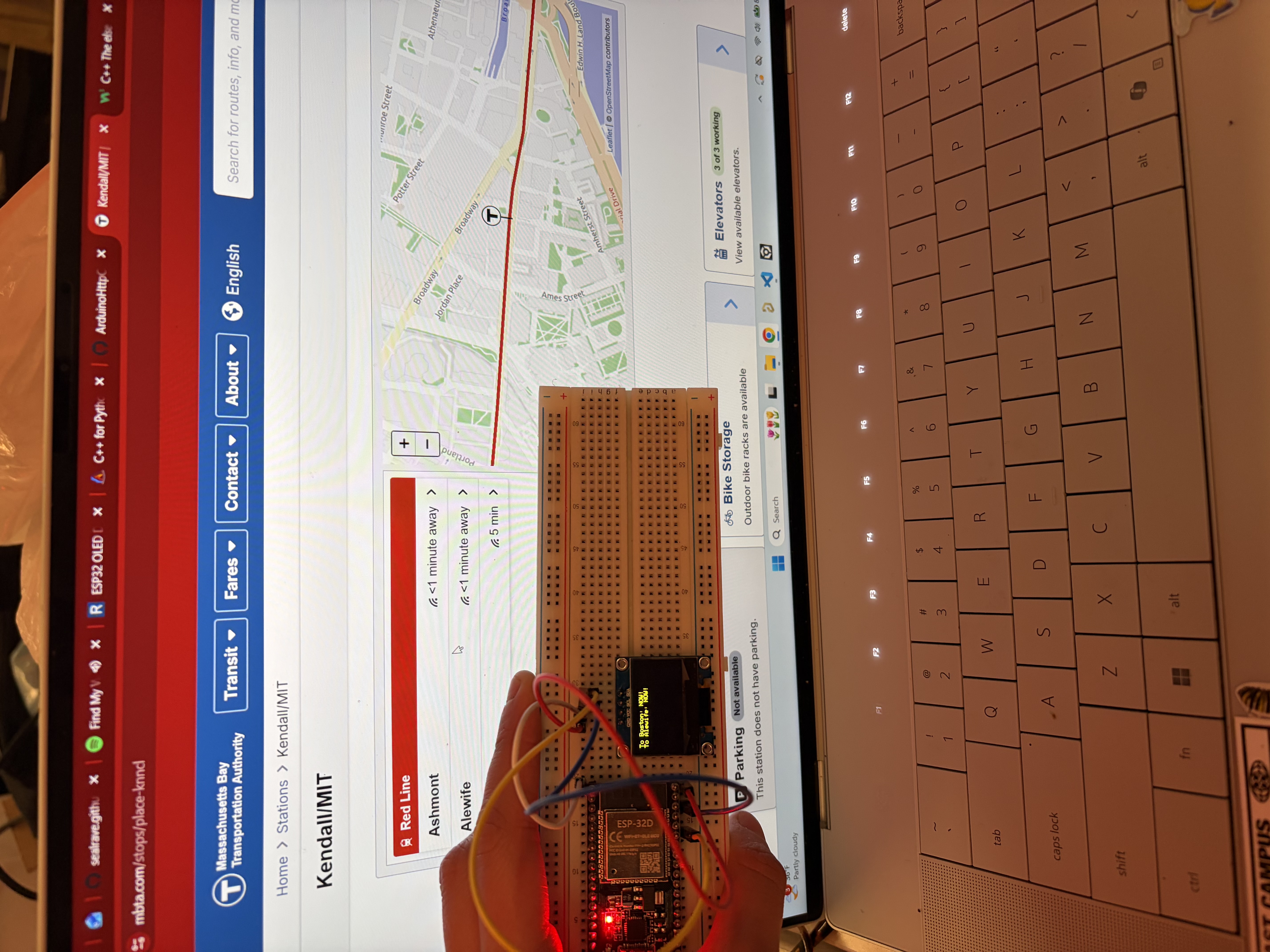 Anyways. I thought that was out of the question, so I resolved to move my work onto a big screen later and start out with an eight pin OLED display that Yabi gave me. After some initial planning, I started off for real by writing a Python program to fetch information about the Red Line stops closest to my dorm from the V3 API, since I’d be learning C++ as I went along and thought reference code in a language I’m more comfortable with would make it significantly easier. Turns out that C++ is not that hard to pick up; there were a few other things, like getting the ESP32 connected to WiFi, that I expected to be a lot more complicated than they actually ended up being.